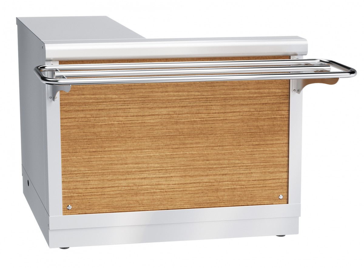 розетка на 230 В для подключения кассового аппарата, 5 вариантов съемных панелей: орех, дуб, вишня, красное золото или нержавеющая сталь, панели легко снимаются и так же легко закрепляются на 4-х декоративных винтах, направляющие без стыков - мы позаботились о качестве сервиса в Вашем кафе: супы и напитки не прольются во время движения подноса (идут в комплекте), цоколь по нижнему краю закрывает просвет от пола до корпуса элементов - пыль не скапливается под изделиями, внизу дополнительная полка, столешница и направляющие - из нерж.стали, левое и правое исполнение, регулируемые по высоте ножки.