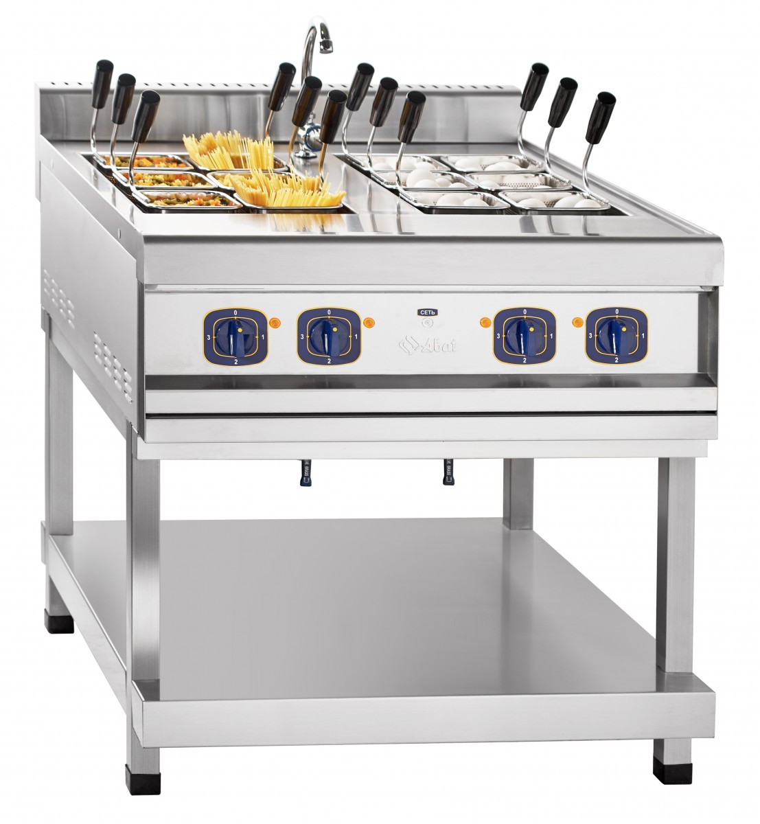 Электроварка ЭВК-90/2П с новыми корзинами GN 1/6 с легкостью справятся с варкой порционных блюд: макарон, картофеля в мундире, яиц, вареников, пельменей, риса и гречки. Электроварки Abat подойдут для любого заведения общепита - столовой, кафе или ресторана и могут эксплуатироваться как самостоятельно, так и в составе технологической линии 900 серии.